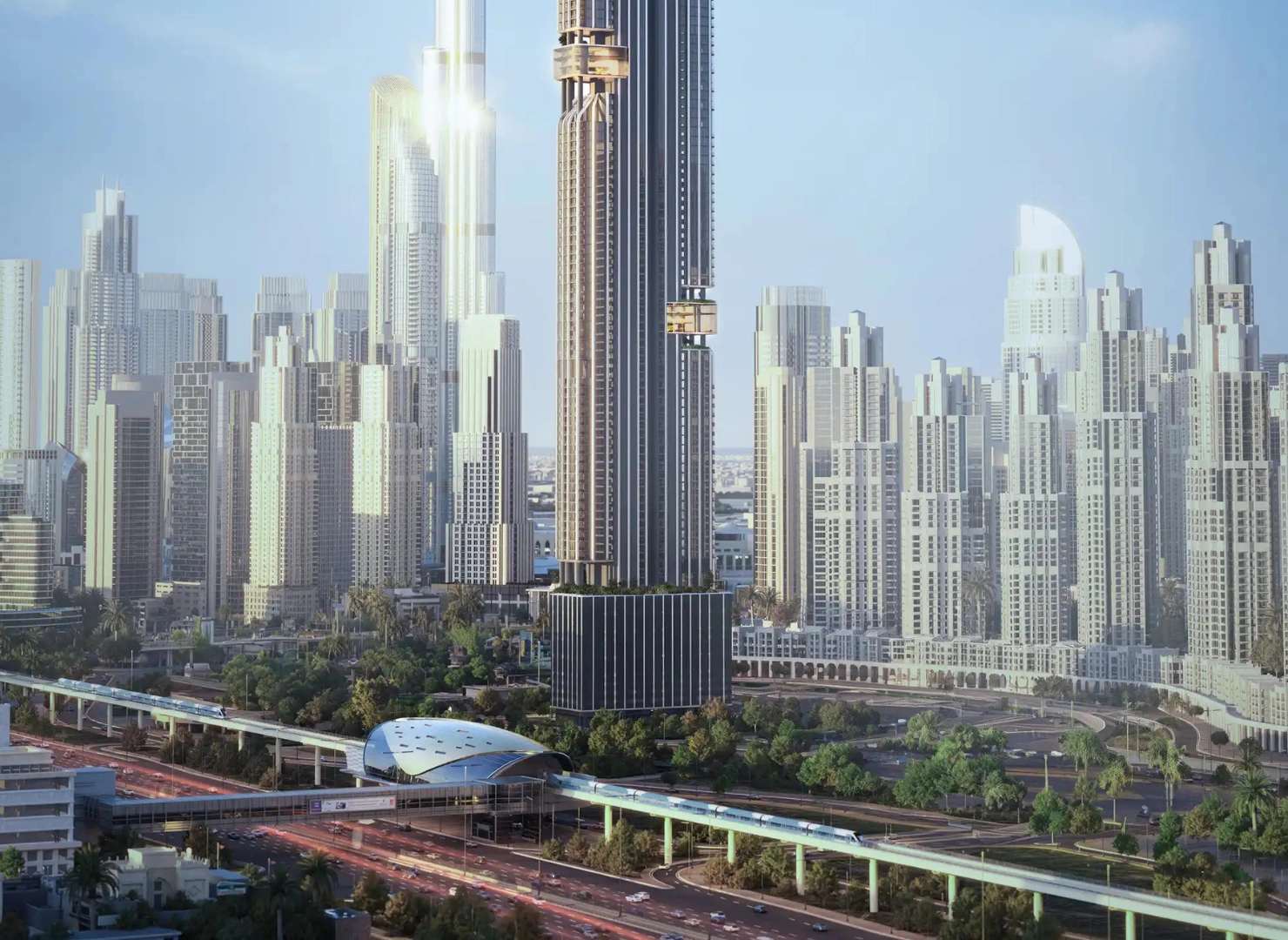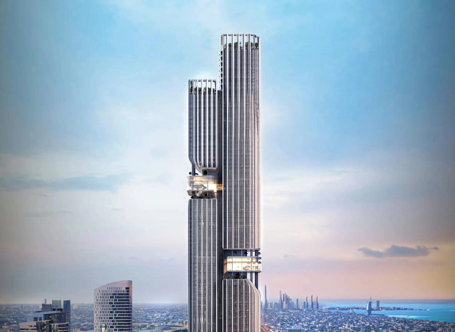 Rising 445 meters into the Dubai skyline, DWTN Residences by Deyaar Properties is a breathtaking 110-storey twin-tower landmark in the heart of Business Bay. Designed to stand among the top 10 tallest residential buildings in the area, it is an architectural statement blending luxury, art, and innovation.