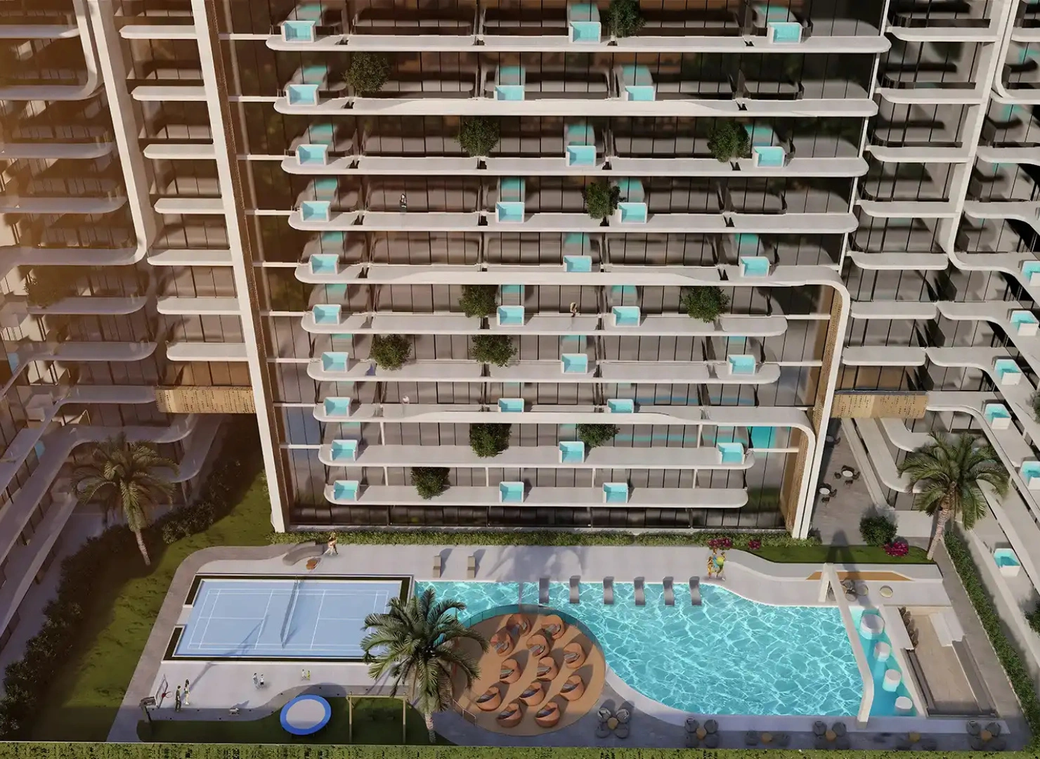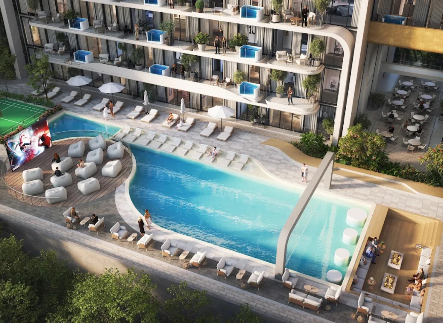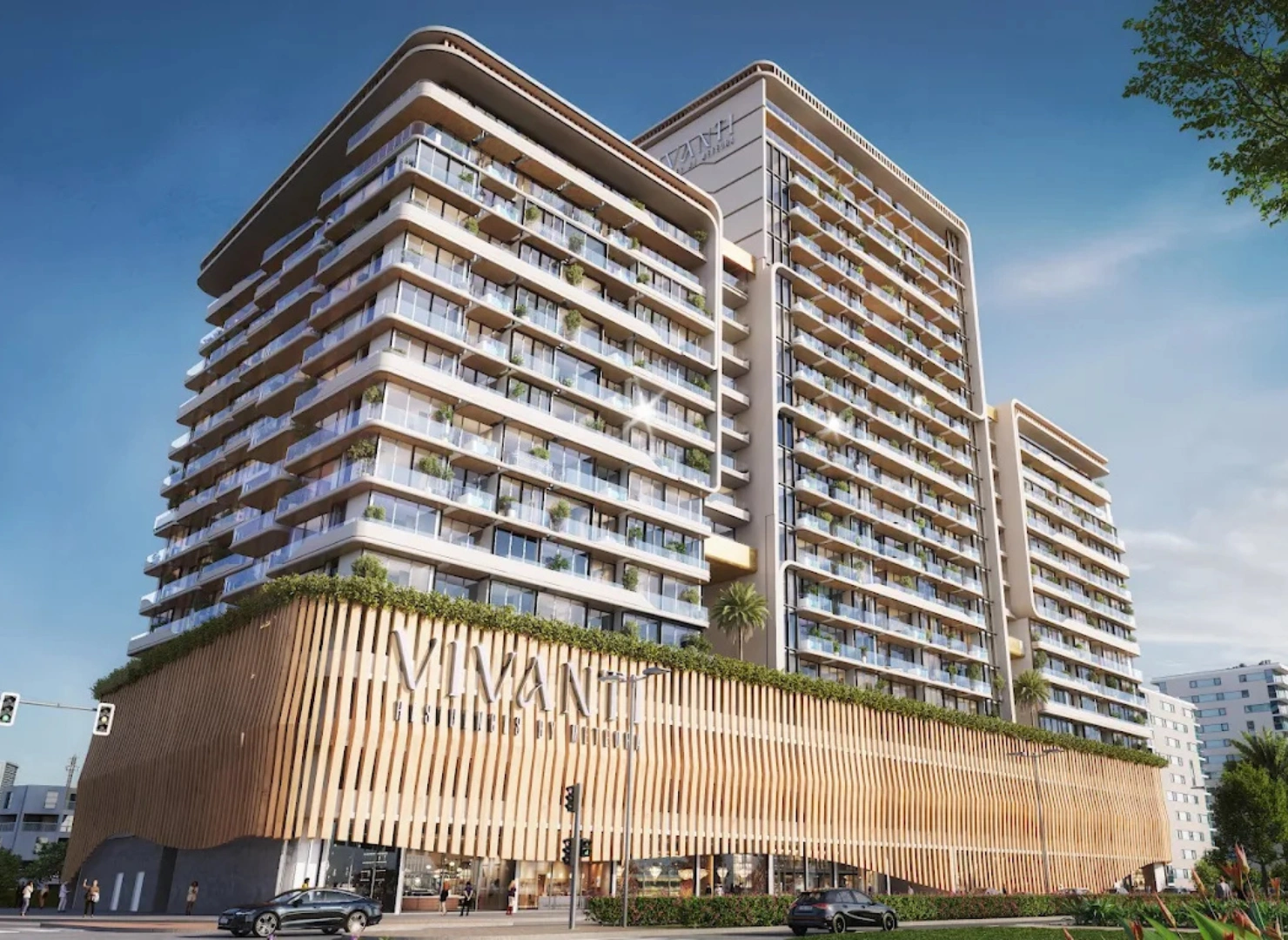 Vivanti Residences at Jumeirah Village Circle (JVC) by Meteora Developers is a modern high-rise community redefining eco-luxury living with its innovative biophilic design. The development features 541 smart homes with studios, 1, 2 and 3-bedroom apartments, including select layouts with private pools on the balcony. Vertical gardens and planted terraces enrich the façade, reducing heat while providing natural beauty and a healthier living environment. Offering a seamless blend of architecture and nature, it creates a serene lifestyle in one of Dubai’s most connected districts.